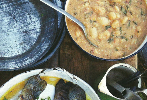 DO AHEAD: Beans can be made 2 days ahead. Cover and chill. Reheat, adding water if too thick, before adding Herb Dressing.
