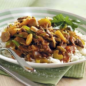 2. Combine the onion, celery, soy sauce, sugar, salt, garlic, ginger and pepper; pour over meat.