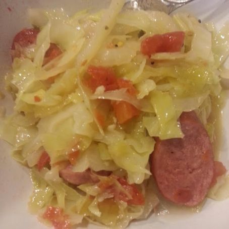 Melt butter in large skillet. Add cabbage, onion, and green pepper and cook on medium high for about 5 minutes stirring to keep from sticking to pan. Add remaining ingredients, cover and simmer for 20 – 25 minutes.