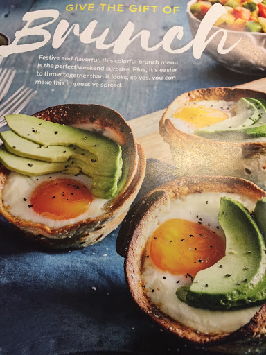 Top Huevos Rancheros Cups with avocado and serve with Pico de Gallo Verde.