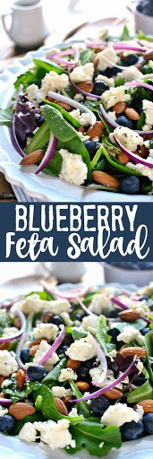This Blueberry Feta Salad is your new go-to salad for spring! It combines fresh blueberries with feta cheese, almonds, and a lemon poppyseed vinaigrette. Perfect for a baby shower or Easter celebration!