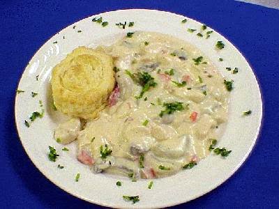 1. Add flour; mix until smooth; then add chicken broth, milk, salt, pepper, and paprika.