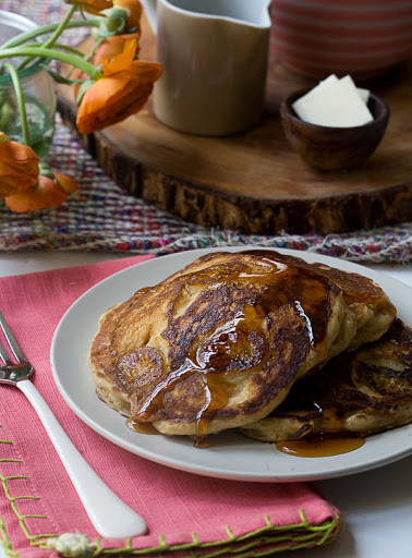 6. Transfer the cooked pancakes to a baking sheet and place in a preheated 200 degrees F oven to keep warm. Repeat the process with the remaining batter, adding more butter or vegetable oil to the skillet when needed. Serve immediately.