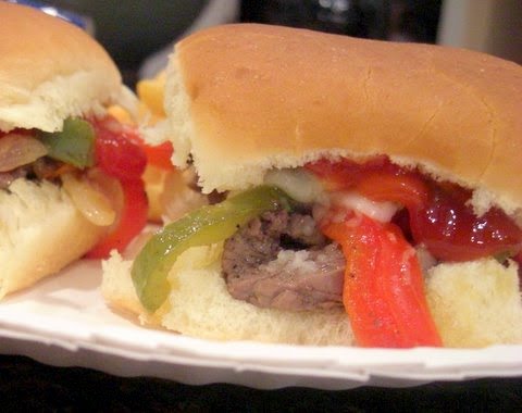 These yummy Cheesesteak Sliders were inspired by Rachael Ray. I added some extras to the mix, including hot cherry pepper juice with a couple of finely chopped hot cherry peppers and oh yeah... don't forget the ketchup!