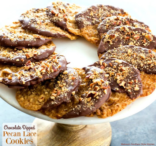 Chocolate Dipped Pecan Lace Cookies