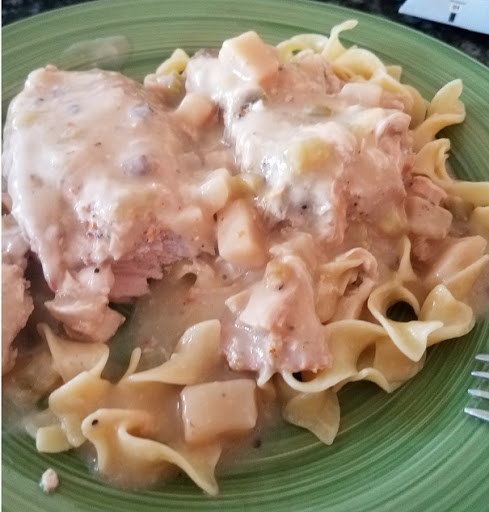 A very satisfying and easy take on pork with white gravy. Simply put it all together and sit back. Serve over Noodles or Rice and grab some French Bread for dipping.