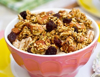 4. Bake for 20-25 minutes, stirring once half way through baking. Allow to cool for about 10-15 minutes on the baking sheet. Makes about 5 cups. Store in an air-tight container for 1-2 months.