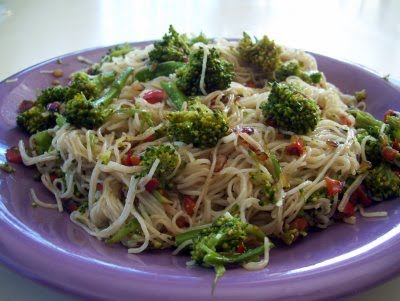 - Disuelva la fécula con un poco de agua y agregue al pollo de a poco, solo hasta que la salsa de la cocción espese un poco, obtenida la textura deseada incorpore el repollo junto con el brócoli y la panceta salteada, saltee unos minutos mas y agregue las flores de calabaza y los tallarines saltee y una vez que tomen temperatura condimente con peperoncino y espolvoree con semillas de sésamo, mezcle y retire del fuego.