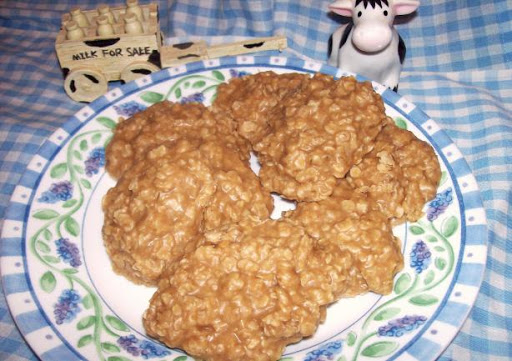 Mix sugar, salt, margarine and milk in a 1 1/2 quart saucepan. Bring to boil over medium heat. Boil for 1 minute and 30 seconds, stirring constantly with a long-handled spoon. Remove from heat. Having remaining ingredients already added together. Mix the liquid with the dry ingredients and mix for 1 minute; drop by spoonfuls onto waxed paper. Let cool until firm before removing to air-tight containers.