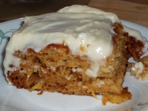 In a medium bowl, combine remaining ingredients. Beat until creamy. Spread on warm cake.