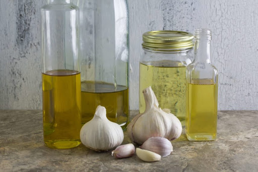 For a more subtle garlic flavor, leave the cloves whole; for more potent garlic flavor halve the cloves Add garlic to oil, off the heat, and allow to sit for about 2 hours. Strain into the clean jar, making sure to remove all of the garlic pieces; we like to line a fine wire-meshed strainer with cheesecloth to catch any garlic pieces. Seal jars and store in refrigerator, using within 3 days, or freeze for up to 3 months for safety (see headnote and TIPS below).