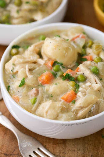 Remove chicken breasts and slightly shred. Add back into slow cooker and stir (this will break up the dumplings somewhat which is ok). Let cook an additional 10 minutes and serve.
