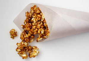 Place popcorn in a large bowl. Working quickly, pour hot caramel over popcorn and use a spoon to coat evenly. Transfer to reserved sheet trays and spread out in an even layer. Set aside to cool completely, then serve.