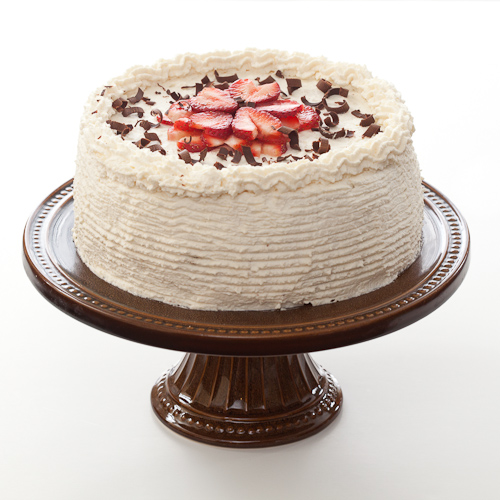 Spread filling in between layers of chocolate cake. Frost cake with whipped cream. Garnish with strawberry slices and shaved chocolate, if desired. Cake keeps very well in fridge as long as it is covered.