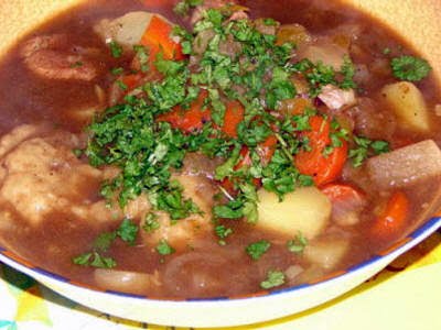 "Hearty and traditional Irish lamb stew. It's best to refrigerate the stew overnight, and reheat it the next day for eating. This soup 'ages' well!"