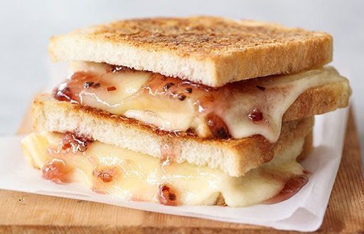 Parmesan Crusted Fondue Grilled Cheese with Pepper Jelly
