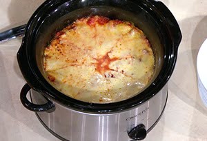 Cook on low, covered, until the noodles are tender—especially in the center of the lasagna—about 3 to 3 1/2 hours.