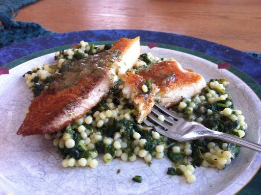 Place fish over couscous and drizzle with the sauce. Serves 2.