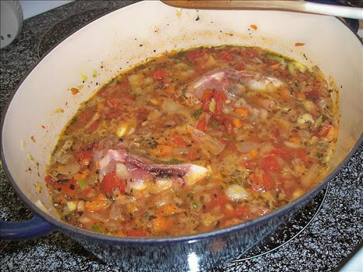 I started w/ Giada De Laurentis' (Everyday Italian Food Network) recipe and tweaked it to my own tastes (ie: I added the wine and garlic, changed the fresh basil to dried, only because I didn't have any on hand-I'm sure fresh is better, I used fire roasted tomatoes instead of plain, and I changed the kidney beans to cannellini beans). We had some crusty roasted garlic bread with this.
