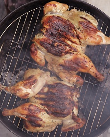 Grill: Heat grill to medium-high, or set up for indirect heat. Grill chicken, breast side down, covered with vent open, until nicely charred, 10 to 15 minutes. Flip; cook 30 minutes more. Flip again; grill until internal temperature reaches 165 degrees in thickest part of breast, 5 minutes more. Let rest 10 minutes.