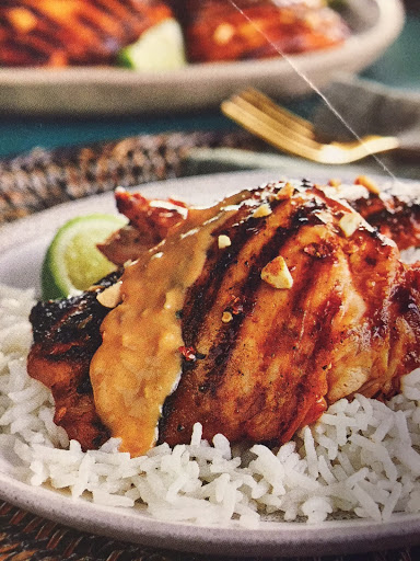 Grilled Chicken Thighs with Sambal Marinade and Coconut Rice