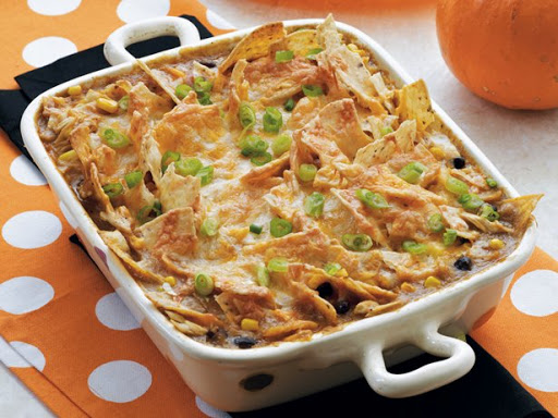 Spoon mixture into ungreased 11x7-inch (2-quart) baking dish. Top with crushed tortilla chips. Sprinkle with cheese. Bake uncovered 20 to 25 minutes or until golden brown.