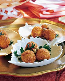 Reduce heat until oil reaches 350. Fry capers for 1 minute, and using a wire-mesh skimmer, transfer to paper towels to drain. Fry parsley leaves for 1 minute, and using a wire-mesh skimmer, transfer to paper towels to drain. (The capers and parsley may cause the hot oil to spatter when added to the pot.) Sprinkle puffs with capers and parsley. Serve warm.