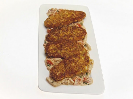 On a work surface, put the chicken between 2 pieces of plastic wrap. Using a meat mallet, lightly pound the chicken until approximately 1/4 to 1/2-inch thick. Season the chicken with salt and pepper. Dredge the chicken pieces in the flour to coat lightly, then dip into the beaten eggs, allowing the excess egg to drip off. Coat the chicken with the bread crumb mixture, pressing gently to adhere.