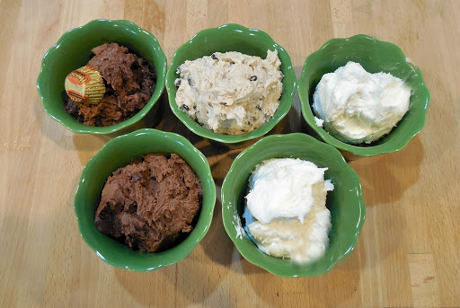 3. Chocolate Chip Cookie Dough: Basic plus 1/2 cup brown sugar, 1 teaspoon vanilla, 1/3 cup flour and 1/2 cup mini chocolate chips.