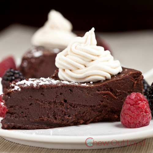 Line a 8-1/2 inch springform pan with parchment on bottom. Grease and flour (any gluten-free flour would work) the parchment and sides of springform pan. Wrap the exterior of pan with heavy duty foil.