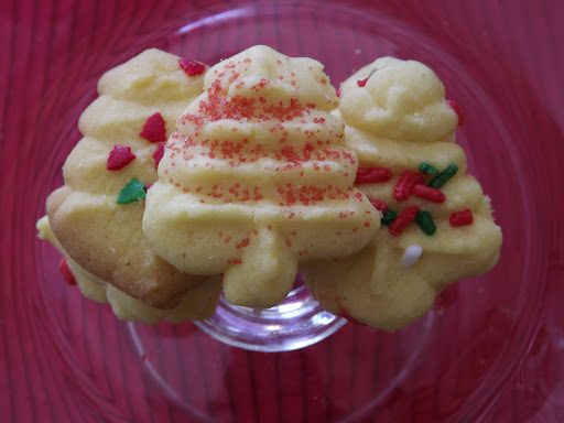 Add beaten eggs, vanilla and food coloring. Mix well. Cut in flour one half at a time.