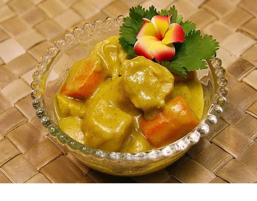 Add the chicken to the curry sauce. Cover the casserole dish and microwave for another 3-4 minutes. Stir to coat the chicken with the curry sauce. Serve hot with a garnish of chopped cilantro.