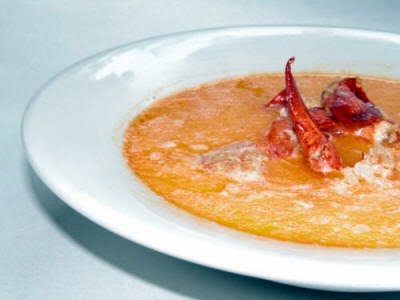 The word bisque refers o a highly seasoned shellfish puree flavored with brandy and cream. Intensely flavored bisques start with a shellfish stock. Use the shellfish butter (the fat layer on the surface of the chilled stock) to caramelize the vegetables. If desired, cook a live lobster in rapidly boiling water for 8 minutes and use the liquid as the base for the stock.