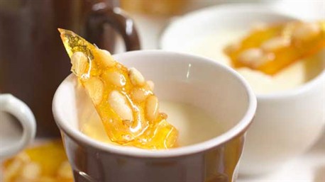 lemon panna cotta with pine nut brittle