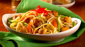 TALLARINES CON POLLO EN SALSA DE PIMIENTO Y QUESO