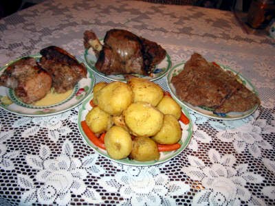 1. Take the lamb and set it upright (standing) in the pot with the brisket.