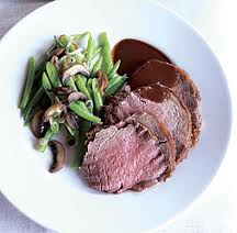 2.) Transfer the meat to a rack set on a baking sheet. Roast until an instant-read thermometer inserted in the thickest part registers 140 degree F for medium-rare, about 30 minutes, or to your desired degree of doneness. Remove it from the oven, cover with aluminum foil, and let rest until the sauce is nearly done before slicing.