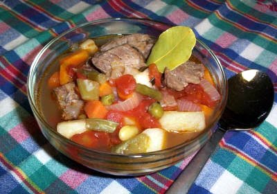 Beef marrow bones encased in tender meat lend their pungent flavor to this soup. Once the meat has been cooked and shredded back into the soup, it becomes more of a stew, perfect for serving on cold winter nights. After shredding the meat from the bones, scoop the marrow out onto a slice of toasted peasant bread—this is the cook's treat. For the soup, bake up a loaf of Irish Soda Bread and serve it along with a large wedge of tangy Cheddar cheese for a memorable feast.