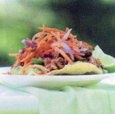 5 Spread a generous spoonful of the guacamole over each tostada and top each with an equal portion of chorizo. Garnish with carrot mixture, a dash of your favorite hot sauce and wedge of lime to squeeze over.