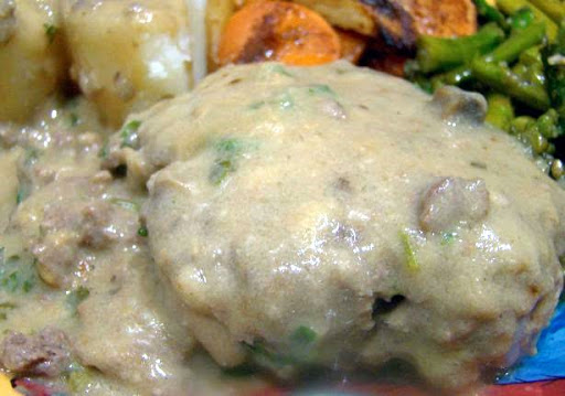 This is a very simple recipe using ground beef and Campbell's Cream of Mushroom Soup. As you can see in the picture, sometimes I add a couple tablespoons parsley. However, my folks in Tennessee are not fond of parsley.