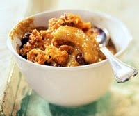 2. Grease a 2-quart square baking dish; arrange apple slices in bottom of dish. Sprinkle with lemon juice, cinnamon, and nutmeg. Top evenly with raisins; set aside.