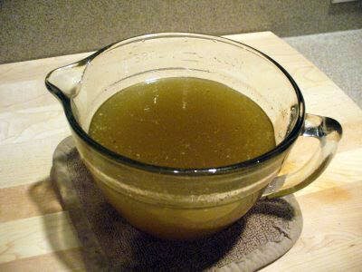 Remove from the heat and strain through a fine mesh strainer into a clean container. (If necessary, strain again.)