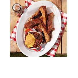 Set the roaster on the grill over indirect heat. Cover the grill and cook for 15 to 20 minutes, brushing the ribs every 5 minutes with the sauce. Transfer the ribs to a cutting board and sprinkle with the remaining spice mixture. Cut into individual ribs and serve immediately. Serves 4.
