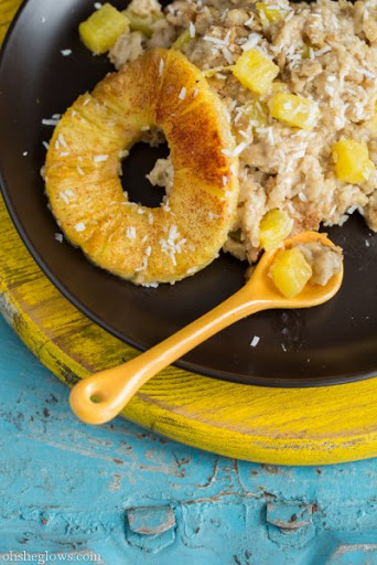 Angie over at Oh She Glows writes: "If Pineapple Upside Down Cake was morphed into breakfast, this would be it. Shredded coconut, rolled oats, pineapple, banana, and some coconut rum for good measure, makes this one of the tastiest oatmeal recipes to ever cross my lips."