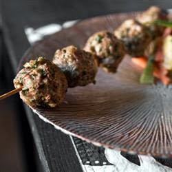 2. In a large bowl, mix together the ground beef, onion, parsley, cayenne, allspice, salt and pepper until evenly blended. Divide into 6 portions, and press around one end of the skewers to form a log shape approximately 1 inch thick and 6 inches long.