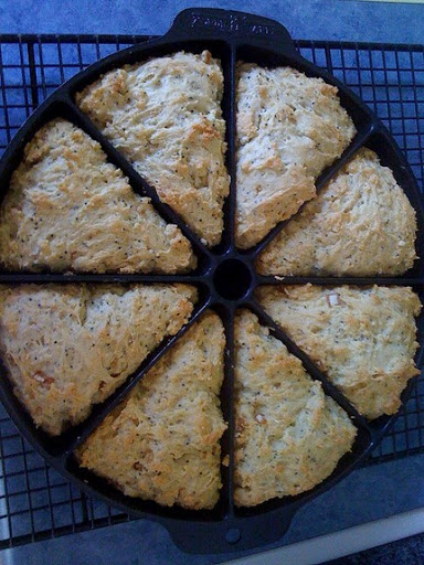 8. Bake in the oven for about 15-18 minutes, or until a toothpick inserted in the middle comes out clean and the scones are golden-brown.