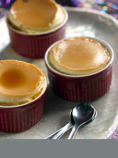 Carefully remove the baking dish from the oven, remove the foil and let the ramekins cool slightly. Using tongs remove the ramekins from the water and set on a towel to cool for at least 2 hours before serving. Once cooled completely, the flan can be refrigerated for up to 3 days before un-molding and serving. To serve, run a thin knife around the inside edge of the ramekin to loosen the flan, and then invert onto a plate.