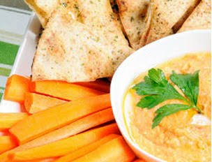 Place on a cookie sheet and bake until crispy, about 5-6 minutes. Serve the ricotta pizza dip with the veggies and pita chips. Yum-o!