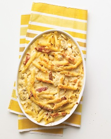 Preheat oven to 400. Butter two shallow 2-quart baking dishes. In a large pot of boiling salted water, cook pasta 3 minutes short of al dente; drain pasta, and return to pot.