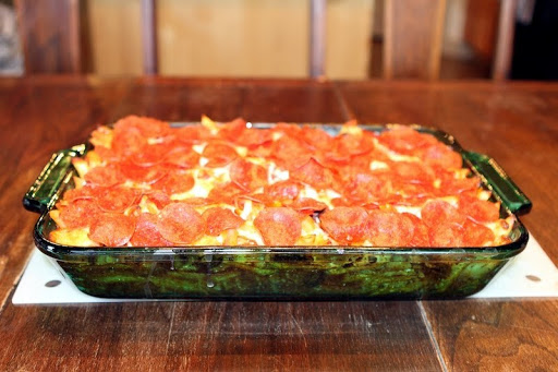 I took a traditional family recipe and put my own nutritious spin on it to create this casserole. The chopped spinach and turkey pepperoni add color and flair, pleasing both the eyes and the palate. —Andrea Abrahamsen of Brentwood, California
